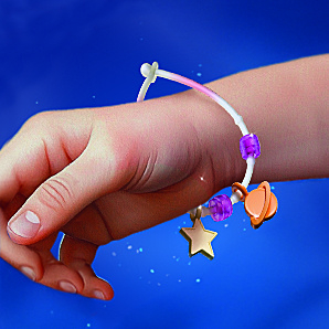 Zwevend tussen verre sterrenstelsels blijft de dappere ontdekkingsreizigster zoeken naar fonkelende kosmische schatten. Elke missie onthult nieuwe mysteries – van stralend sterrenstof tot vreemde signalen die door de leegte klinken. Met haar glinsterende uitrusting en trouwe blaster baant ze zich een weg langs lichtgevende sterrenbeelden. Kinderen kunnen de bijgeleverde armband versieren met bedeltjes en kralen en zo een beetje sterrenstof overal mee naartoe nemen.